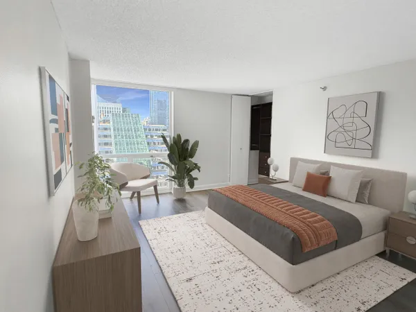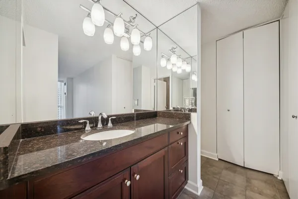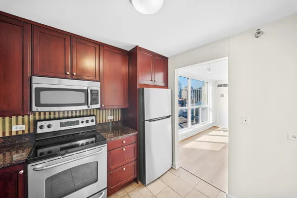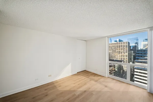 UPDATES as of October 2025 include: high performance durable 7-inch-wide luxury water-resistant vinyl flooring, a new GE refrigerator, new paint on all walls, doors, trim, baseboards, and ceiling, a new light fixture in the second bathroom, new light filtering vertical blinds throughout, and new custom closets. Ready for immediate occupancy, experience life in the vibrant heart of downtown Chicago, just a short walk from all the city has to offer! This UPDATED high-floor open-concept design features a wall of windows in the living/dining area and includes brand new high performance durable 7-inch-wide luxury water-resistant vinyl flooring throughout the living/dining space and both bedrooms, fresh paint throughout including all walls, doors, trim, baseboards, and ceiling, new light filtering vertical blinds throughout, new custom closets, and two opulent marble full baths with full-height mirrors and Brookhaven cabinetry! Indulge in a contemporary kitchen with newer stainless GE appliances including a brand-new refrigerator, tall Brookhaven dark cabinets for extra storage, custom tile flooring, stylish granite countertops with a custom tile backsplash, and a large single bowl sink. Savor stunning city views from the living/dining area and both bedrooms, enhanced by a private balcony and endless views off the living room. The living/dining area is further enhanced by overhead track lighting that creates a warm atmosphere. The building boasts full amenities, including a 24-hour doorman, a gym, a sundeck, and on-site laundry facilities! Located just steps away from every train line in the city, you will find an array of fantastic bars and restaurants, such as City Winery along the Chicago Riverwalk, RPM, and many more. Enjoy endless shopping on Michigan Avenue, entertainment options like the Goodman Theatre, and convenient access to Lake Michigan, the riverwalk, grocery stores, gyms, and the highway.