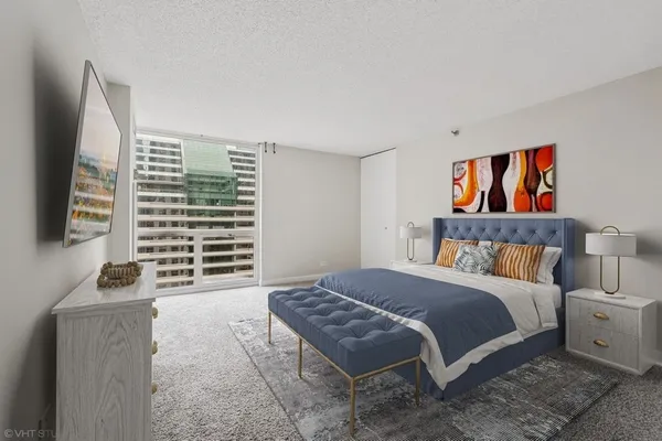 **Stunning Southwest Corner Residence in the Heart of Chicago's Iconic Theater District** Welcome to an exceptional residence perfectly situated in the vibrant Chicago Loop. This expansive, sun-drenched southwest corner unit offers dramatic floor-to-ceiling windows framing panoramic city and sunset views, visible from nearly every room and your private balcony. Designed for modern living and effortless entertaining, the open-concept living and formal dining area flows seamlessly into a sleek, contemporary kitchen featuring crisp white cabinetry, stainless steel appliances, quartz countertops, and a convenient breakfast bar. The home features hardwood floors, brand-new carpet in bedrooms, and is Newly Painted. The spacious primary suite is a tranquil retreat, complete with generous closet space and a beautifully appointed bathroom. Additional highlights include wide-plank wood laminate flooring throughout, custom upgrades, and dedicated storage. Set within a full-amenity building, residents enjoy 24-hour door staff, an indoor pool, sundeck, state-of-the-art fitness center, bike storage, laundry room, and direct access to Chicago's famed Pedway system, connecting you to shopping, dining, and cultural landmarks. A+ location just steps from Michigan Avenue, Millennium Park, the Riverwalk, premier dining, transportation, and entertainment venues. **Investor friendly-no rental cap. Monthly assessments include all utilities except electric.** Don't miss this rare opportunity to own a spectacular corner unit in one of downtown Chicago's most coveted addresses! NOTE: There isn't an in unit washer and dryer however building allows installation for an in unit washer and dryer. There is a Laundry facility in the building.