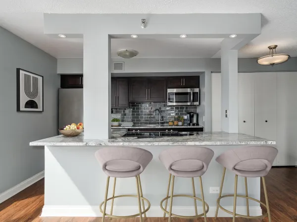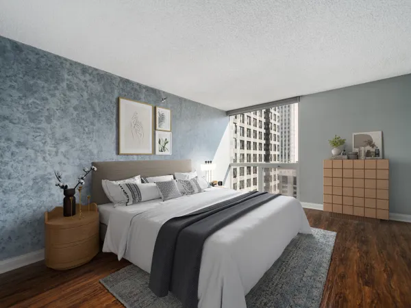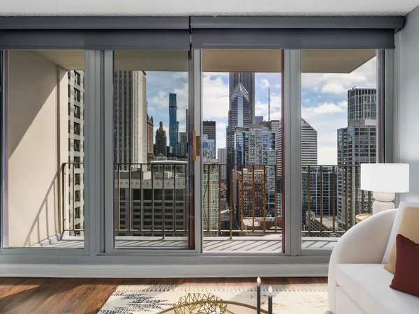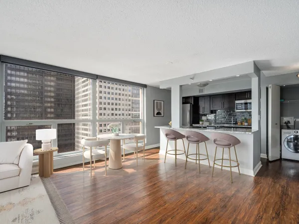 Experience elevated city living from this high-floor residence in 200 N Dearborn. Flooded with natural light from expansive South East floor-to-ceiling windows, you'll find stunning skyline views. The updated kitchen features all stainless steel appliances and an open layout designed for entertaining. The large bedroom and walk-in closet create comfortable living. Additional conveniences include a private balcony and combination in-unit washer/dryer. Residents enjoy full-service amenities including 24-hour door staff, fitness center, indoor pool, and more. Perfect for both owner occupants & investors, this building has no rental cap. Ideally located in the heart of the Loop-just steps to the Riverwalk, Millennium Park, CTA access, and the city's best restaurants and entertainment.